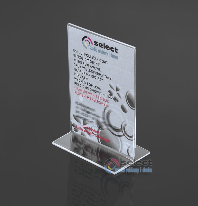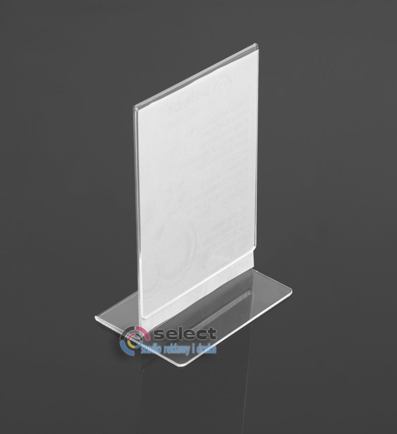 інформаційна стійка " T " - це практичне рішення для представлення інформаційних матеріалів на прилавку або столі. Виготовлений з прозорого пластику методом вигину, відрізняється сучасним і естетичним дизайном. Завдяки вертикально розташованому кишені він дозволяє представляти інформацію як в односторонньому, так і в двосторонньому порядку. Стабільна підставка забезпечує деяку настройку, а Заміна матеріалів надзвичайно проста – просто розсуньте підставку знизу або посуньте інформацію збоку. Ідеально підходить для офісів, точок обслуговування клієнтів і торгових точок.