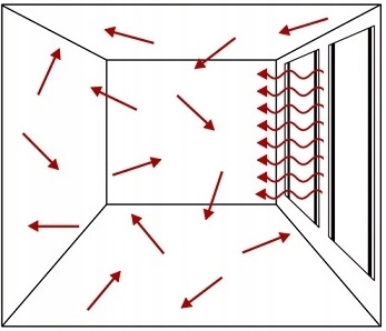 інфрачервоне опалення, невидимі інфрачервоні хвилі випромінюються по всій кімнаті, нагріваючи стіни, предмети і людей