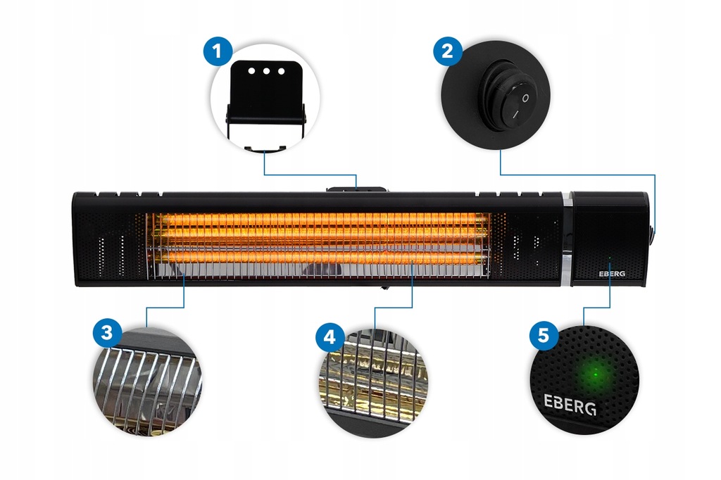 ⭕EBERG IXU 2000 може використовуватися в якості джерела тепла для обігріву невеликих і середніх приміщень, а також на відкритому повітрі (під навісом).