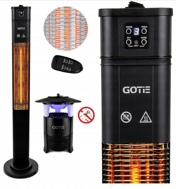 обігрівач gotie компактний-його висота становить 125 см.він має великий нагрівальний елемент і функцію коливань вліво-вправо, тому ми можемо одночасно нагрівати велику площу поверхні. Технологія інфрачервоного випромінювання забезпечує відмінну тепловіддачу.