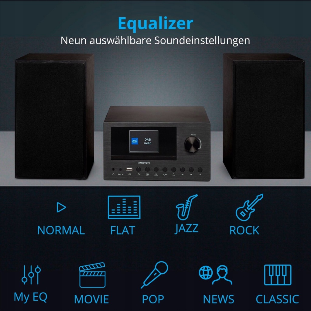 Micro Tower MD85008 це компактна аудіосистема, яка підходить для будь-якої квартири. За допомогою цього пристрою ви можете легко відтворювати CD (CD-R або CD-RW), MP3, а також насолоджуватися відмінним прийомом інтернет-радіо, цифрового DAB+абоFM . Tower також дозволяє бездротово передавати музику через Bluetooth зі смартфонів і планшетів або відтворювати її безпосередньо з USB-накопичувача.