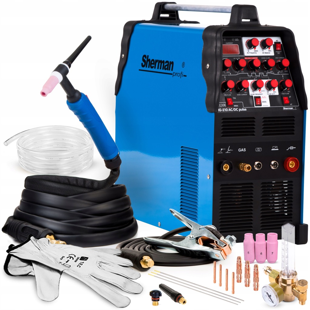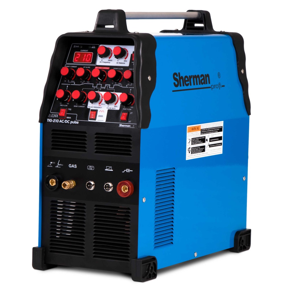 простий в експлуатації зварювальний апарат tig для алюмінію з функцією PULS з ручкою TIG SR26 в комплекті !ІНВЕРТОРНИЙ ЗВАРЮВАЛЬНИЙ АПАРАТ SHERMAN TIG 210 AC DC PULSE MMA 230V 200A ALU