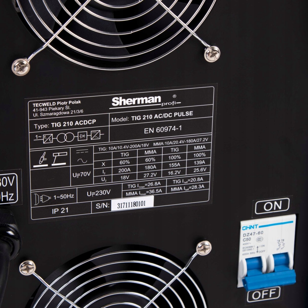 виробник: SHERMAN ║ методи зварювання: TIG AC / DC, імпульс, MMA Zasilanie джерело живлення: 230V ║ зварювальний струм: 200A ║ ККД:60%