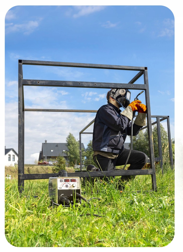 SKANDI KRAFT iSimple MIG 210 - це інверторний зварювальний апарат, який автоматично підбере напругу зварювального струму ( V) і дроти (m/min) до заданого зварювального струму ( a ) і типу матеріалу. Вбудовані синергетичні програми для матеріалів (чорна сталь, INOX, FLUX (без газу*) ) гарантують, що Налаштування зварювального апарату тривіально проста. Пристрій дозволяє зварювання з максимальним струмом 200A, так що ви можете отримати 5 мм переплавки і зварити матеріал до товщини 10 мм. Зварювальний апарат має два великих легко читаються дисплея, які дозволяють точно налаштувати зварювальний апарат і легко контролювати параметри під час процесу зварювання.