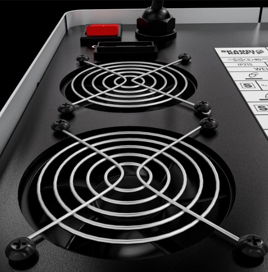 більшість зварювальних апаратів виходять з ладу через металеві тирси, що всмоктуються вентиляторами, які викликають коротке замикання. Пристрій SKANDI KRAFT iSimple MIG 210 оснащено модулем FAN STOP , тому вентилятори працюють тільки під час зварювання і через деякий час після, що знижує всмоктування тирси. Потужні вентилятори деяких зварювальних апаратів створюють шум до 90 дБ (порівняємо з дорожнім рухом на відстані 10 метрів). таким чином, система FAN STOP забезпечує чисту внутрішню частину пристрою і комфортну роботу.