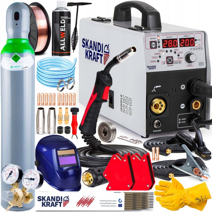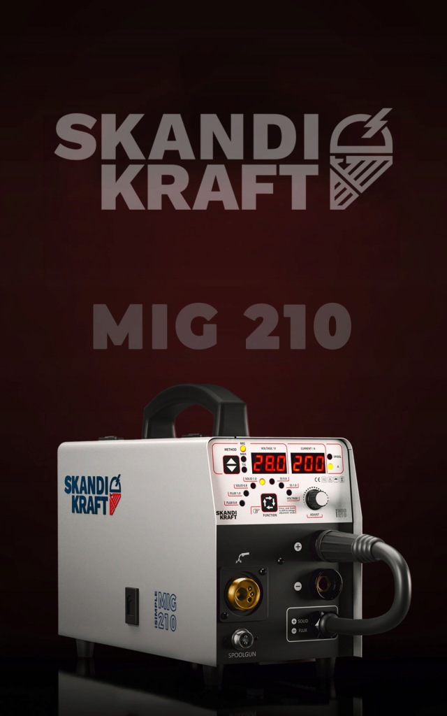пристрій марки SKANDI KRAFT із Серії iSimple являє собою компактний напівавтоматичний зварювальний апарат , призначений для зварювання низьковуглецевої, низьколегованої ( MAG ), легованих сталей ( MIG ) і алюмінію і його сплавів. Пристрій також може бути зварено методом MMA з використанням плавких покритих електродів. MIGOMAT SKANDI KRAFT iSimple MIG 210 побудований на транзисторахIGBT . Це рішення забезпечує менше споживання електроенергії, більшу стійкість до перешкод, падінь напруги, а також безперебійну роботу.