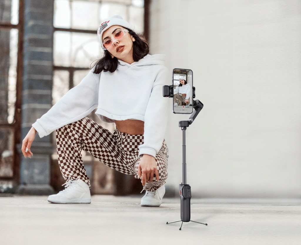 завдяки вбудованому датчику AI VISION gimbal дозволяє відстежувати обличчя / обʼєкти як вдень, так і вночі.