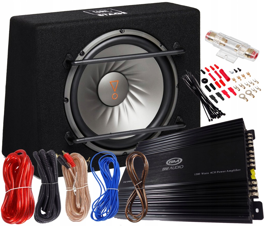 JBL КОРОБКА БАСОВА ТРУБКА САБВУФЕР 1000 ВТ + ПІДСИЛЮВАЧ 1200 ВТ + КАБЕЛІ