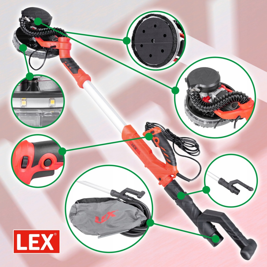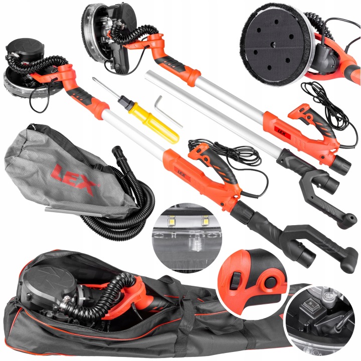 гіпсова шліфувальна машина "жираф" LXDWS175 - відмінне рішення для тих, хто цінує точність, зручність і надійність. Оснащений рухомою головкою, телескопічним цоколем і світлодіодним підсвічуванням, він забезпечує комфортну і ефективну роботу в будь-яких умовах.