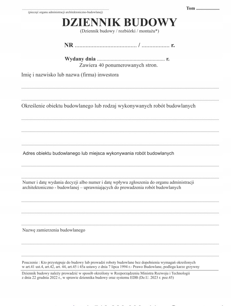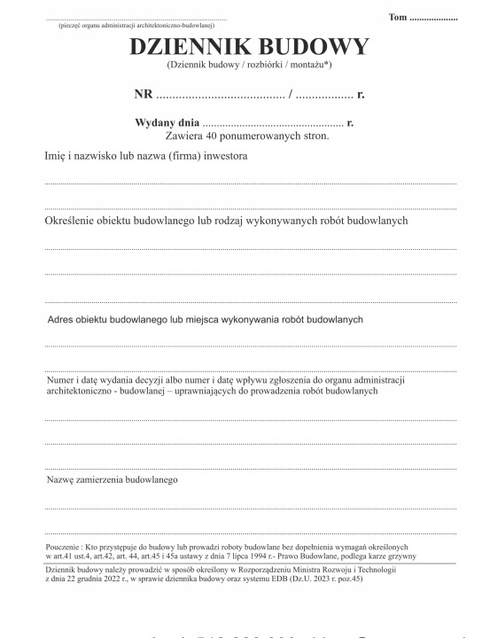 журнал будівництва адаптований до Постанова міністра розвитку та технологій від 22 грудня 2022 р.