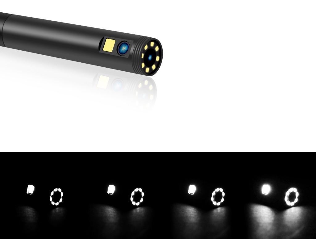 камера має вбудований 8DIOD LED(основна камера) + 1 світлодіод (бічна камера), які висвітлюють робоче місце ендоскопа. Світлодіоди мають регулювання яскравості, тому ми можемо уникнути переекспонування зображення та налаштувати потужність світлодіодів відповідно до ситуації.