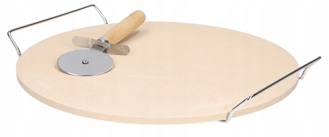 камінь для випічки піци діаметром 33 см, ідеально підходить для випічки хрусткої піци, хліба і булочок, виготовлений з шамотної кераміки, відмінно розподіляє і зберігає тепло, час випікання піци 5 хвилин, після того, як вона нагріється, металева підставка і ніж для різання піци в комплекті.