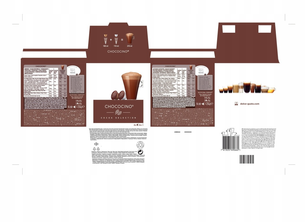 - 8 капсул з шоколадом і 8 капсул з молоком на 8 порцій Nescafé Dolce Gusto Chococino.