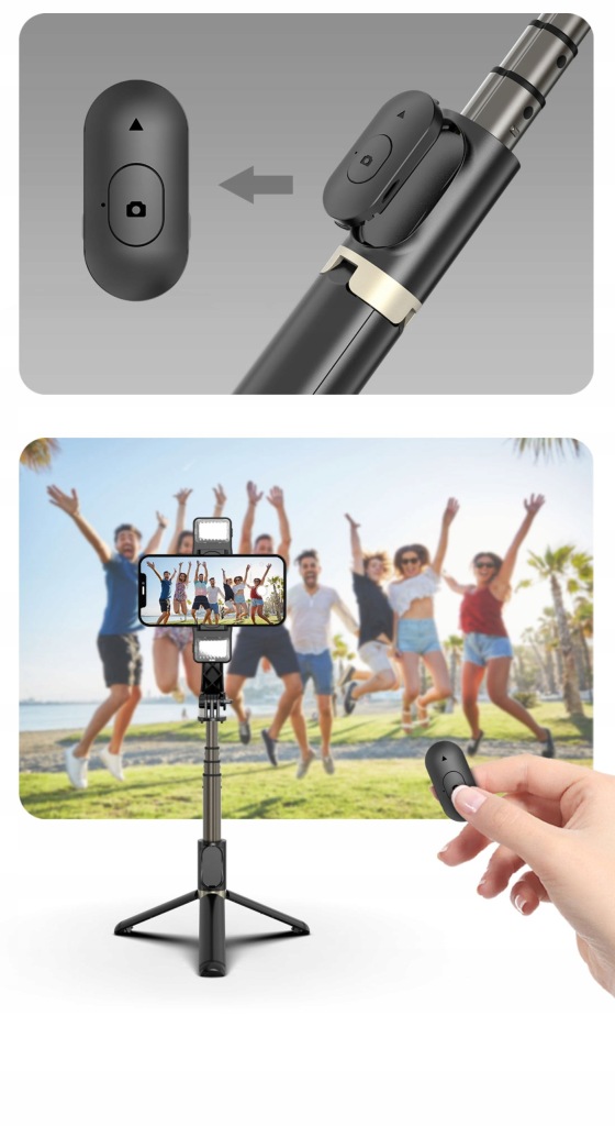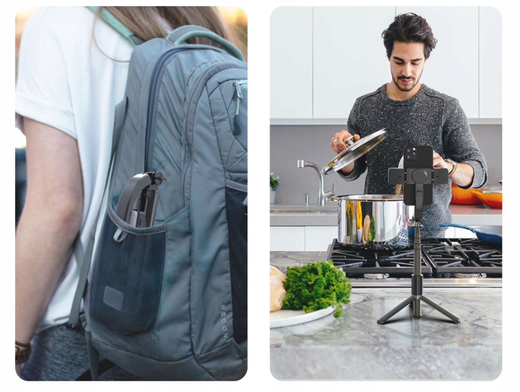надзвичайно практичний дизайн , який дозволяє легко складати і телескопічне подовження . У складеному вигляді він стає компактним, що полегшує його зберігання і транспортування, ідеально підходить для подорожей. З іншого боку, можливість подовження до 758 мм дозволяє отримати більш широкі кадри і зручнузапис з більшої відстані , що корисно при зйомці пейзажів, Селфі або групових знімків.