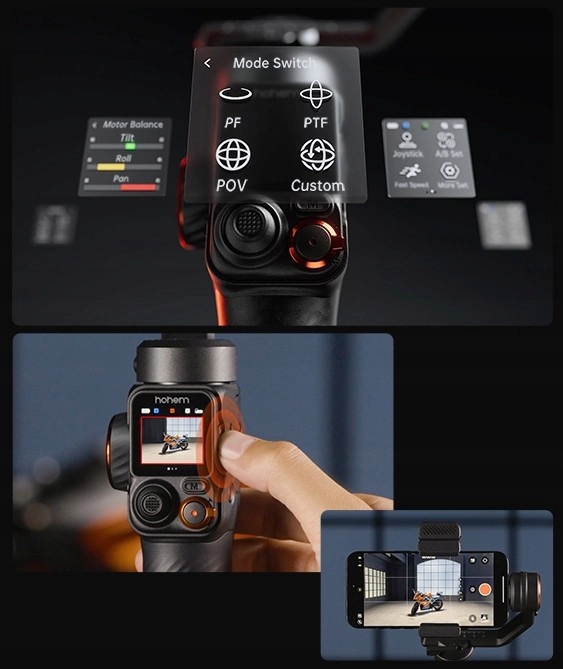 Hohem Isteady M7 оснащений сенсорний екран з інтуїтивно зрозумілим інтерфейсом, який дозволяє: