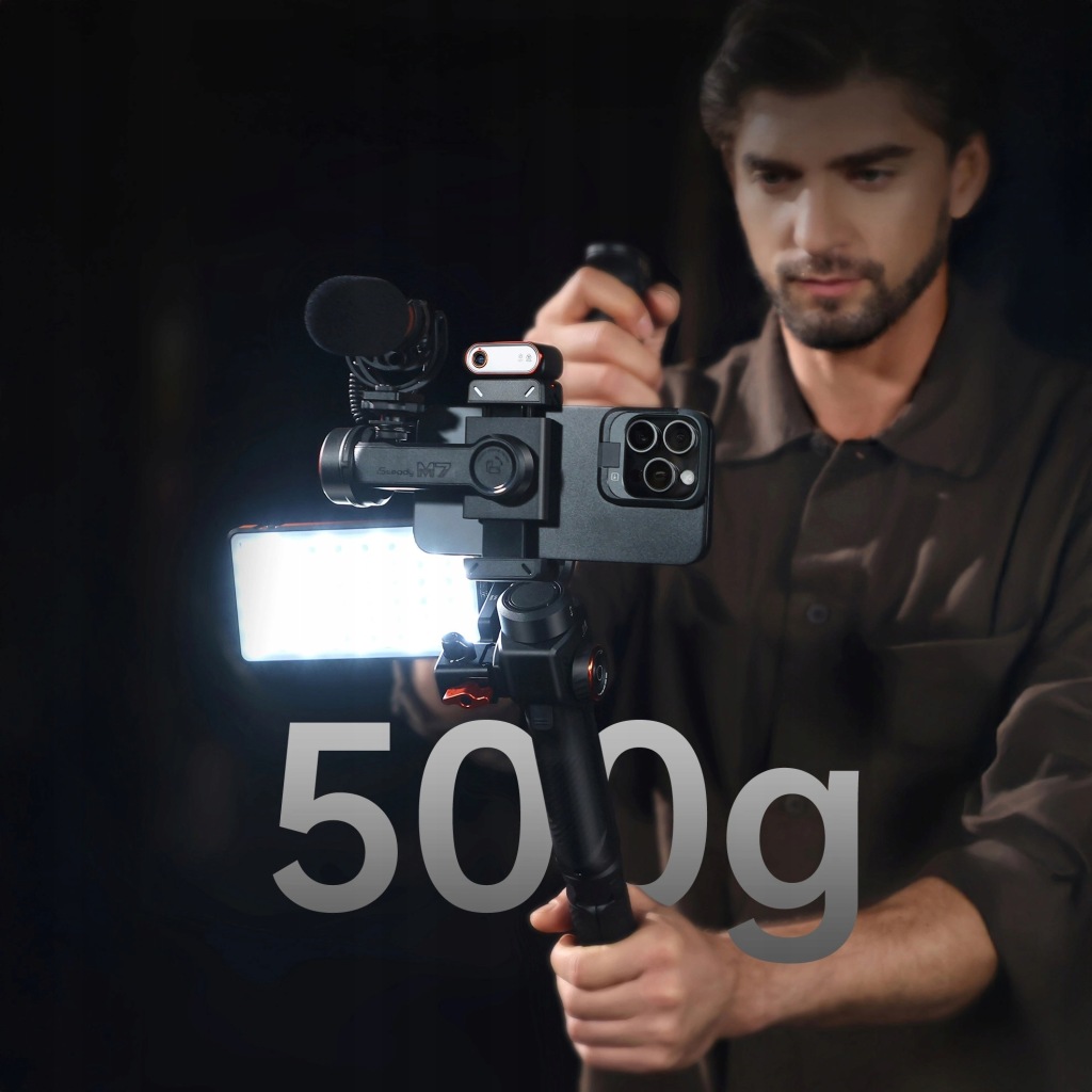 Gimbal підтримує пристрої вагою до 500 г , що означає підтримку великих і важких смартфонів. Це на 30% більше вантажопідйомності, ніж iSteady M6, що робить його більш універсальним інструментом.