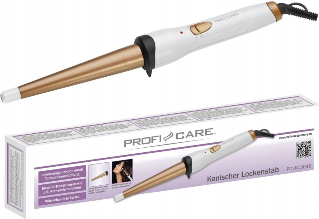 модель: PC-HC 3049ProfiCare PC-HC 3049-це легкий і зручний щипці для завивки з керамічним турмаліновим покриттям і функцією іонізації. Функція іонної технології дозволяє краще укладати волосся за рахунок антистатичної дії-це гарантує, що волосся не електрифіковані і не висушені, стають гладкими і блискучими.