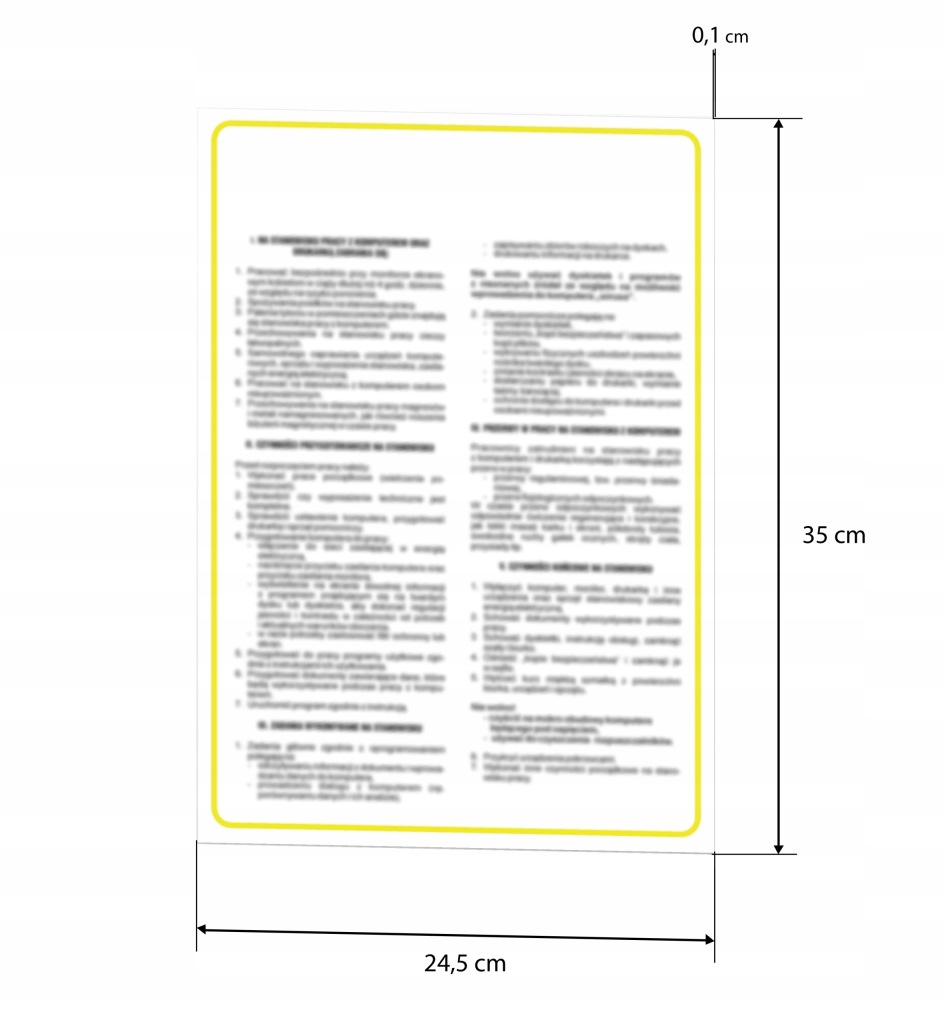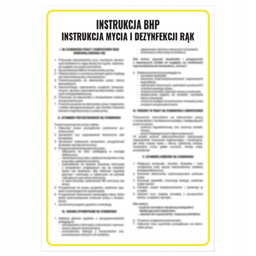 ✅як і всі інформаційні інструкції ohs має жовту рамку навколо тексту. Вона повинна знаходитися в легкодоступному місці, щоб працівник міг скористатися нею в будь-який час.
