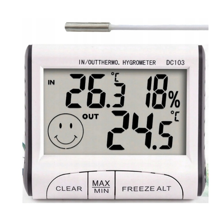 the product has A readable LCD display on which all values are presented . There is a memory function , as well as readingthe lowest andhighest values during the day. На додаток, смайлик також відображається на екрані, які сигнали, коли умови зовні зручні чи ні (see photo ). Це можливо у форматіthe temperature units (degrees C / degrees F).