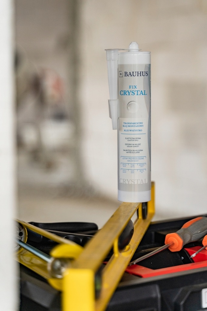Bauhus Fix Crystal - однокомпонентний клей у вигляді пасти на основі синтетичних каучуків в органічних розчинниках. Призначений для різних монтажних і оздоблювальних робіт в будівництві, особливо в ситуації, коли потрібно безбарвний і міцний зварний шов