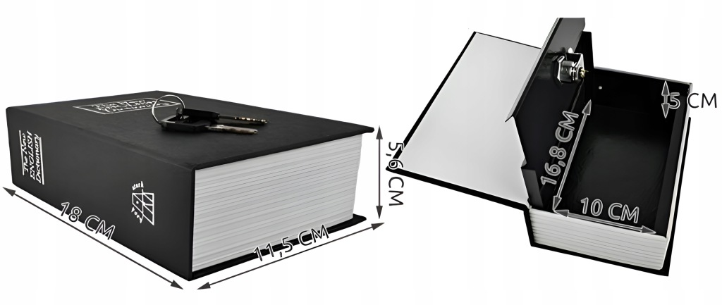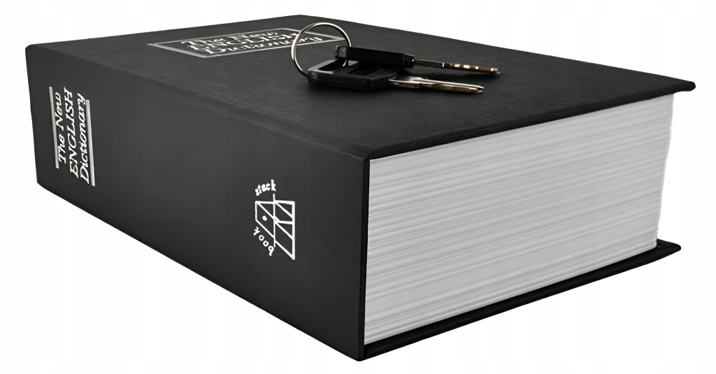 ящик, захований в книзі, - це рішення, яке в два рази захищає від доступу сторонніх осіб до прихованих всередині предметів. Вдала імітація книги робить знаходиться на полиці портативний сейф, на перший погляд невизнаним. Фактура обкладинки і реалістична форма листівок не привертають уваги. Назва, вигравірувана на обкладинці, також передбачає, що це просто Мовний словник, який є одним із дуже поширених предметів, що використовуються щодня в будинках, квартирах, офісах чи інших місцях.основні характеристики