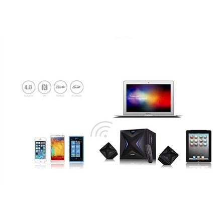F&D f550x - це потужні низькочастотні динаміки, які забезпечують достатню потужність, щоб насолоджуватися музикою, фільмами та іграми з високоякісним звуком. також доступне відтворення з USB абокарти памʼяті .