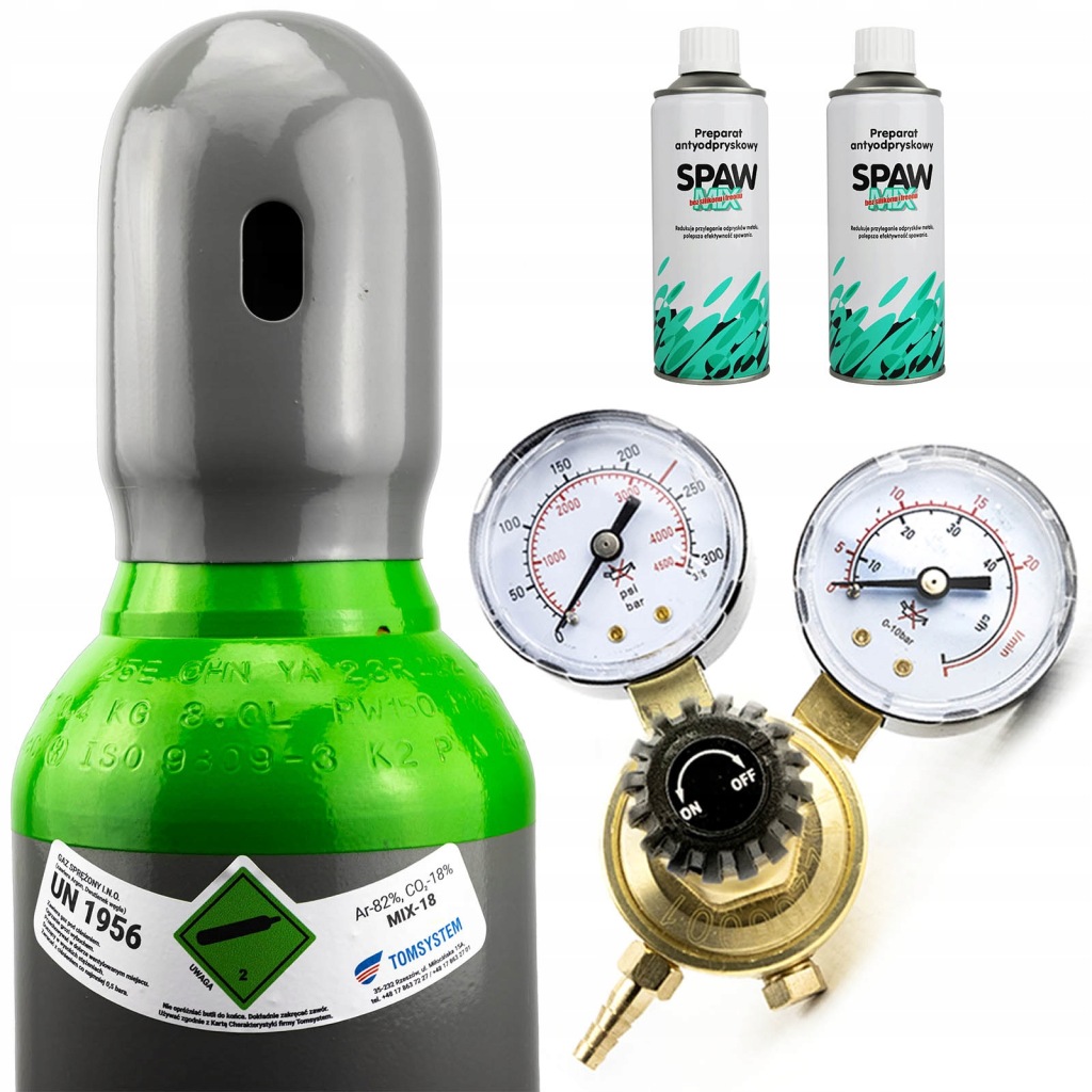 необхідний для зварювання захисними газами, легкий, зручний, високоякісний газовий балон mix (суміш, суміш) Argon Ar 82% + вуглекислий газ CO2 18% (ємність 8л). Циліндр заповнений, а робочий тиск становить 150 бар. Газові балони цього типу широко використовуються в зварювальних роботах. Кожен газовий балон, який ми продаємо, є новим і наповнюється в нашій компанії, а також відповідає суворим стандартам якості та безпеки. Клапани оберігаються від відкручування як плівкою, так і спеціальним ковпачком. Крім того, кожен газовий балон має легалізацію на 10 років з дати виготовлення.