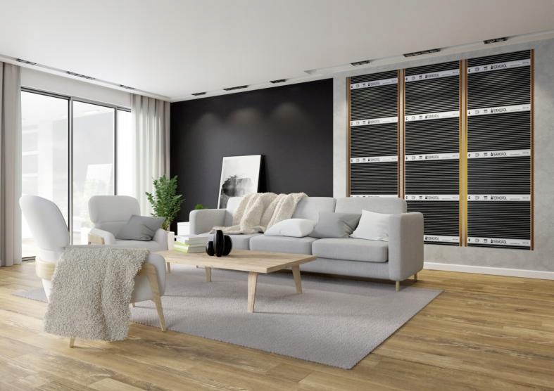 настінне опалення гарантує рівномірний розподіл температури по всій висоті приміщення. Вона характеризується відсутністю циркуляції повітря через відведення тепла в приміщення за допомогою випромінювання. Елементом оздоблення стін є гіпсокартон без і з обробкою, ламіновані плити і стінові панелі.