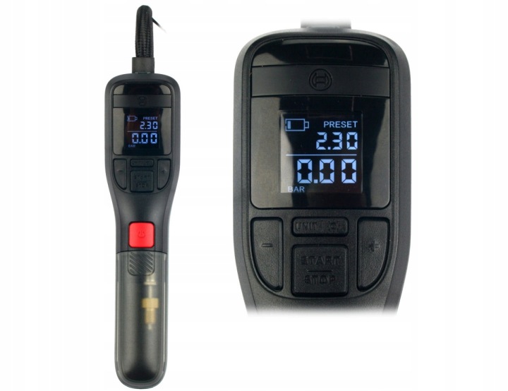 Автоматичний вимикач в поєднанні з вбудованим манометром дозволяє дуже точно встановити заданий тиск при досягненні, пристрій автоматично вимкнеться, функція, особливо корисна при накачування автомобільних і велосипедних шин і скрізь, де необхідно досягти заданого тиску.