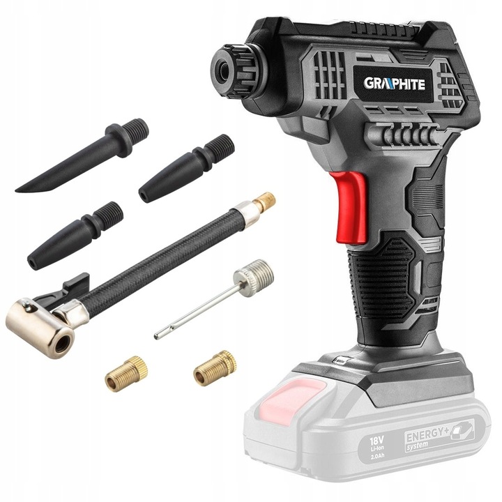 - Для живлення компресора потрібен літій - іонний акумулятор energy+ graphite