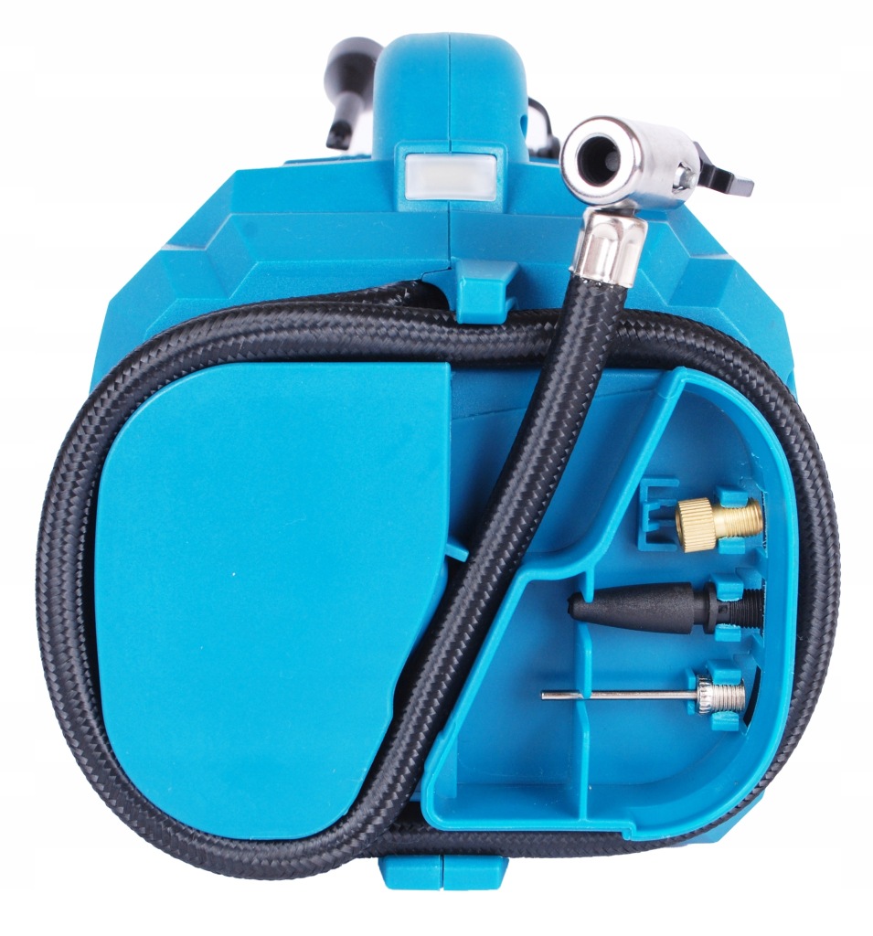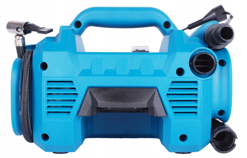 - це пристрій, призначений для накачування коліс, мʼячів, матраців. Робочий тиск 10 бар і витрата повітря 235 л / хв роблять компресор дуже ефективним. Вбудований манометр дозволить контролювати робочий тиск пристрою. До складу компресора входить набір з чотирьох насосних наконечників і додатковий шнур, за допомогою якого ми легко не тільки надуваємо, але і відкачуємо повітря, наприклад, з матраців або басейнів.