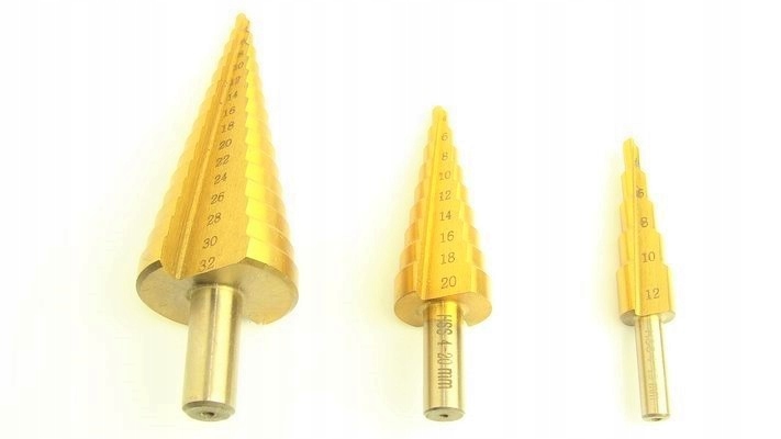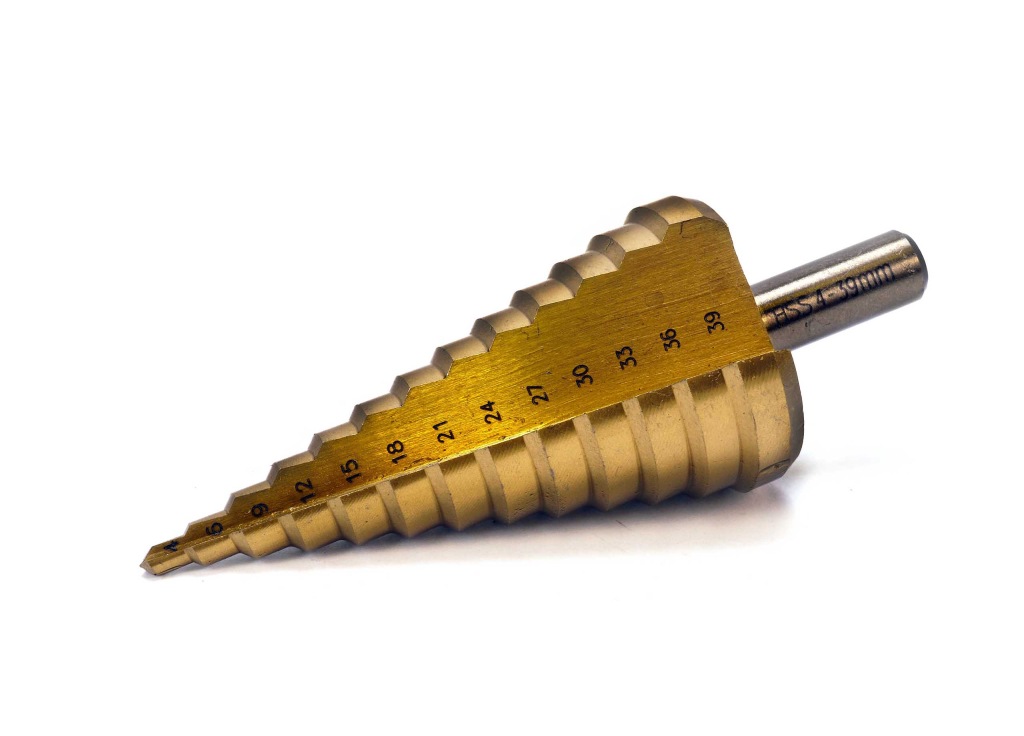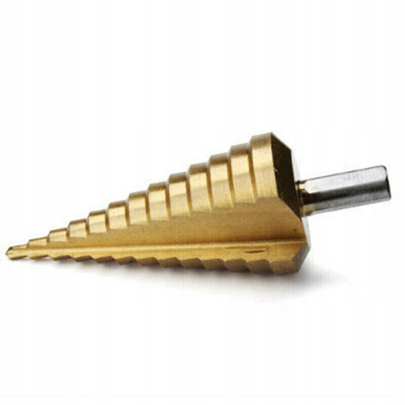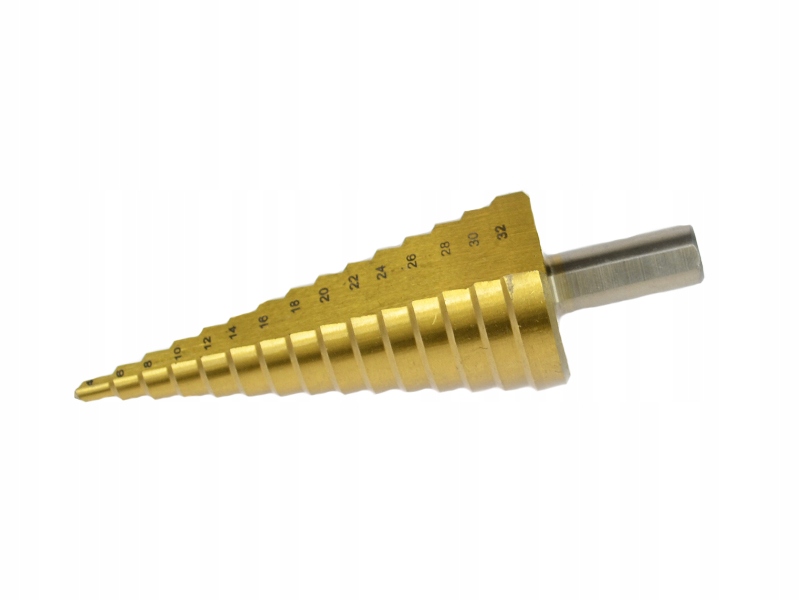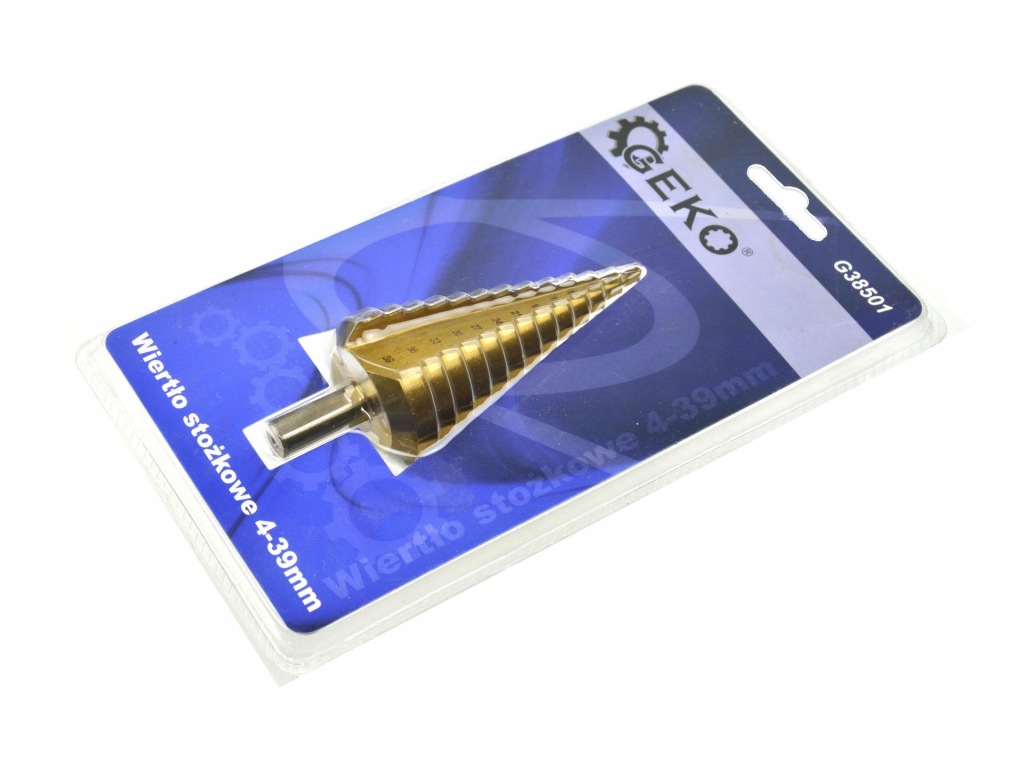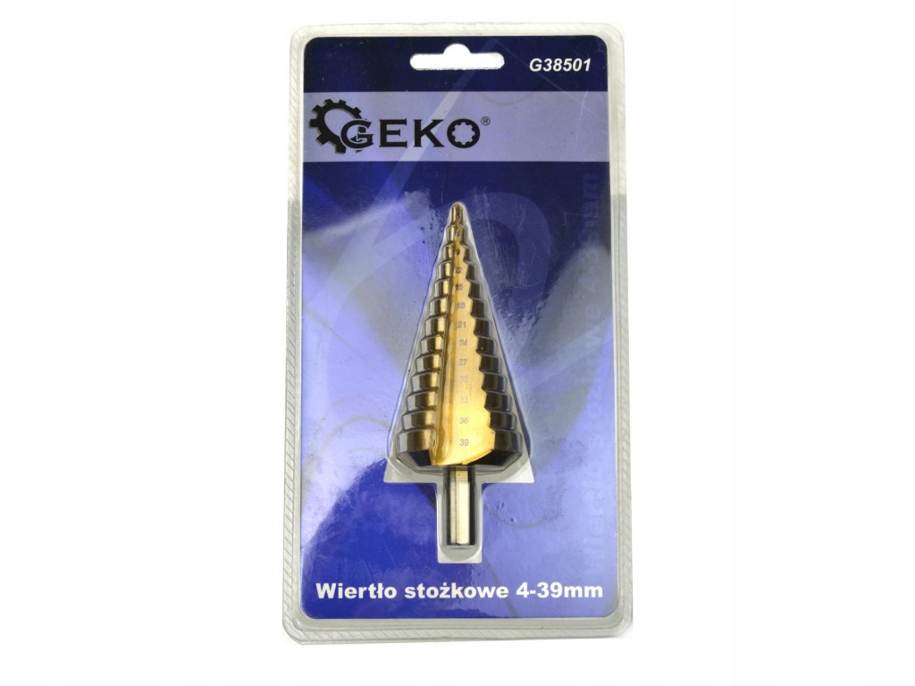 конусне свердло маркиGEKO виготовлений з швидкорізальної сталі HSS додатково з титановим покриттям для швидкого і точного свердління . призначений для металів, тонкостінних сталевих листів, пластмас .