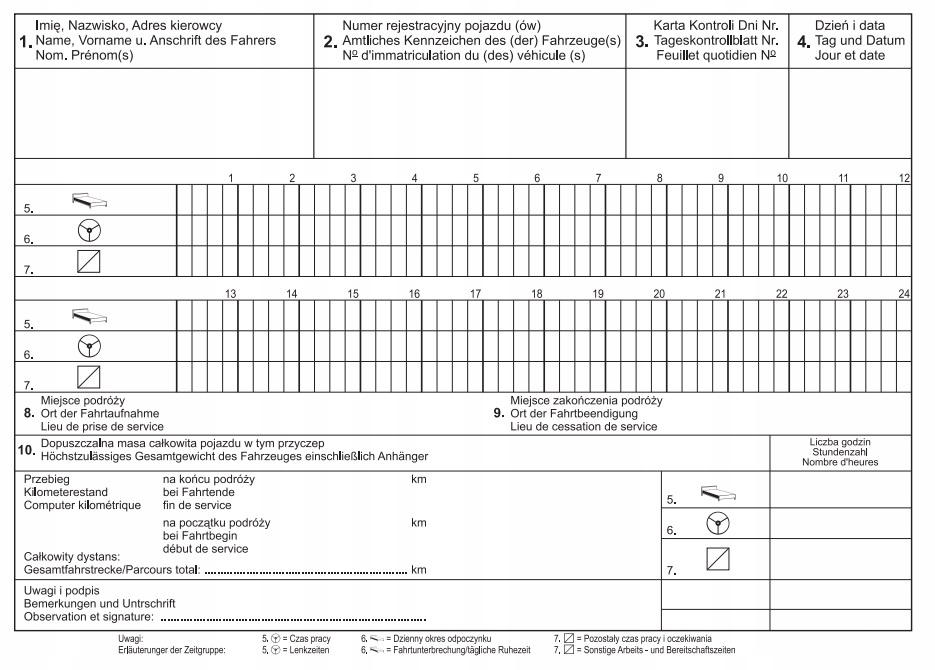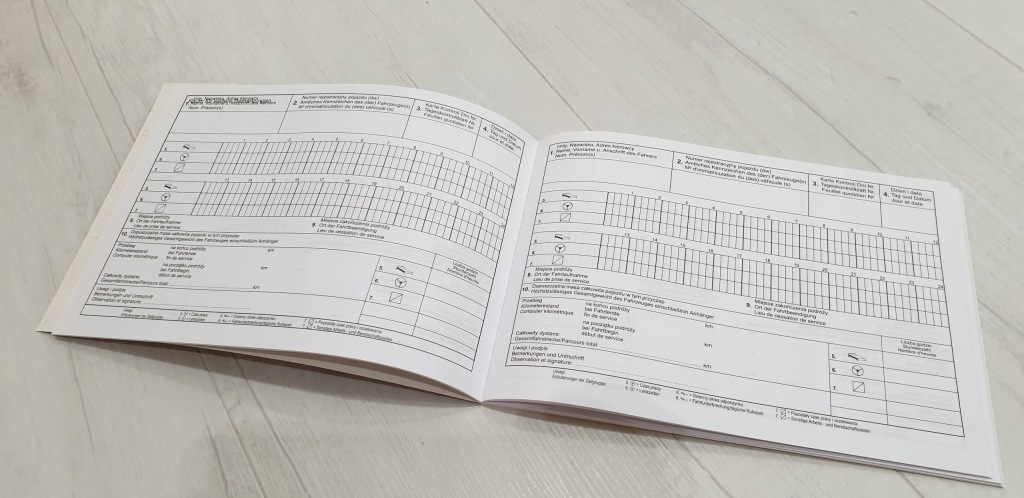 контрольна книга робочого часу водія (Kontrollbuch) потрібно при управлінні вантажівкою з повною масою від від 2,8 до 3,5 тонн.