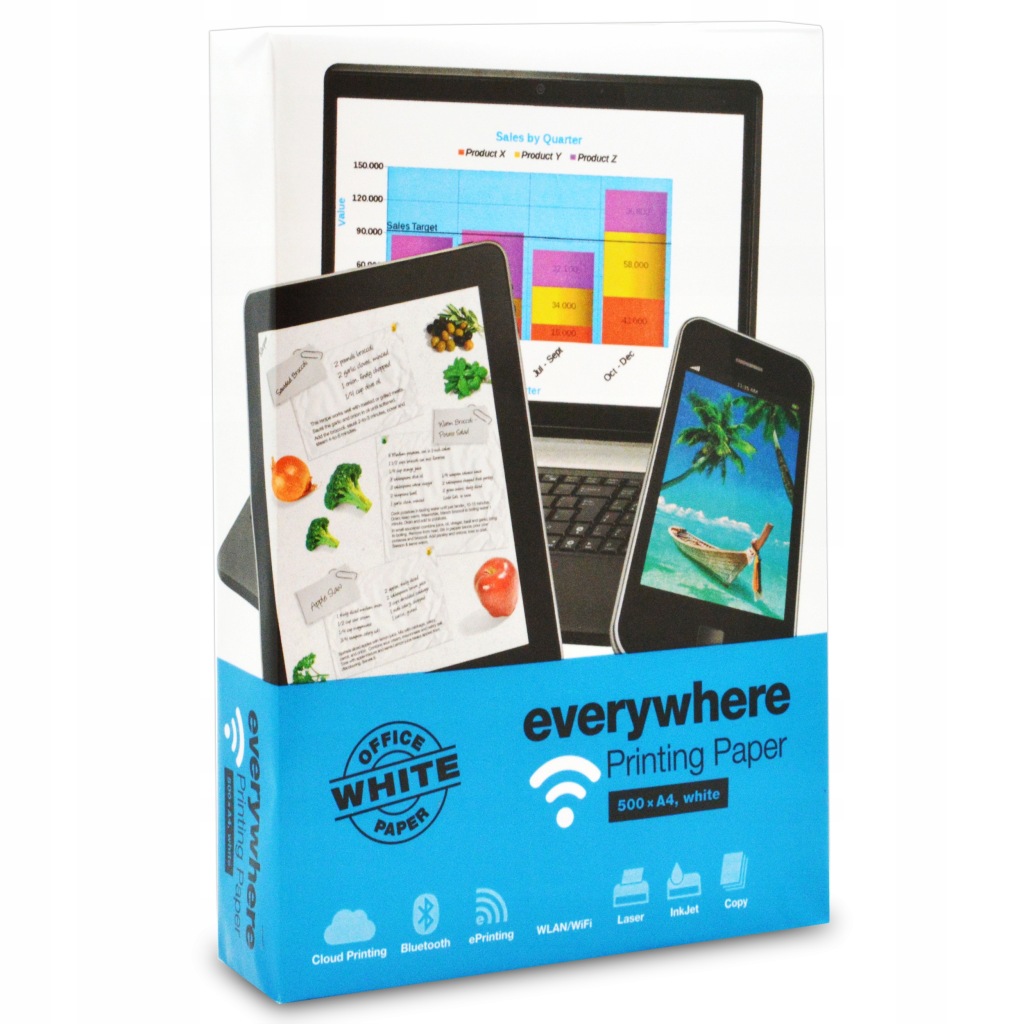 біла, без деревної маси, копіювальний папір, що підходить для повсякденного друку. Призначений в основному для чорно-білих документів, які складають більшість відбитків в будь-якому офісі. Забезпечує швидкий друк і копіювання. Рекомендується для внутрішньої корпоративної інформації, звітів про зустрічі та роздруківки електронною поштою. Білизна 146.