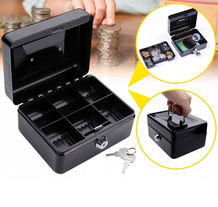 міцний металевий футляр-ідеальне рішення для зберігання грошей, ювелірних виробів, документів та інших дрібних предметів. Він забезпечує безпеку ваших заощаджень і цінностей, а його компактні розміри дозволяють легко заховати його в будь-якому місці або взяти з собою в подорож.