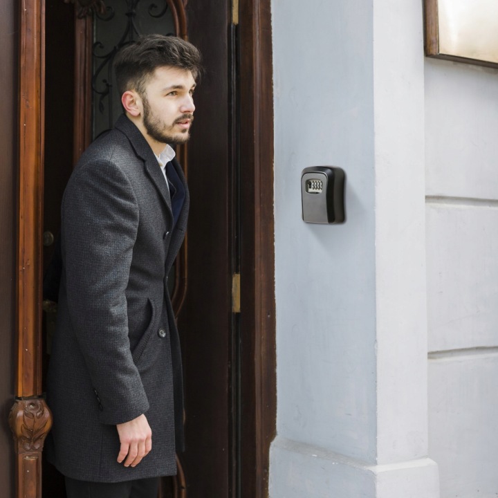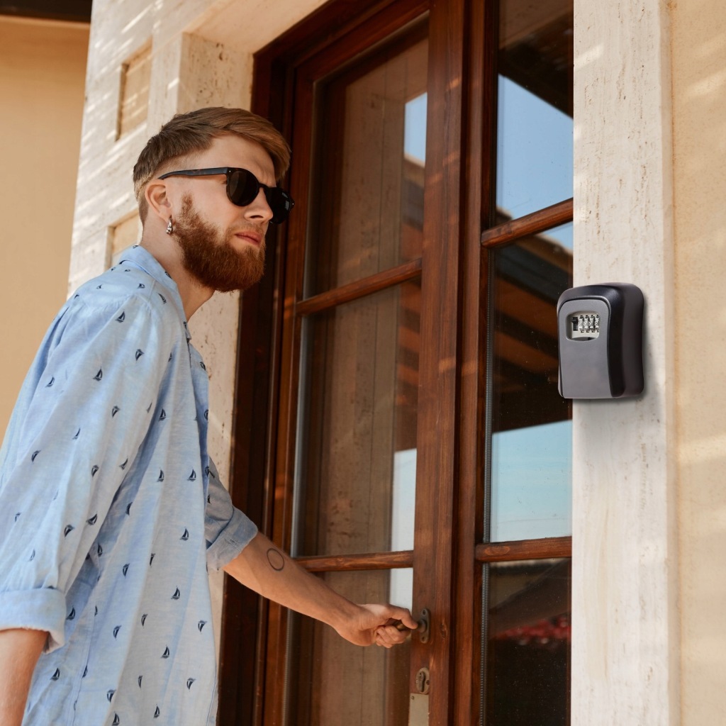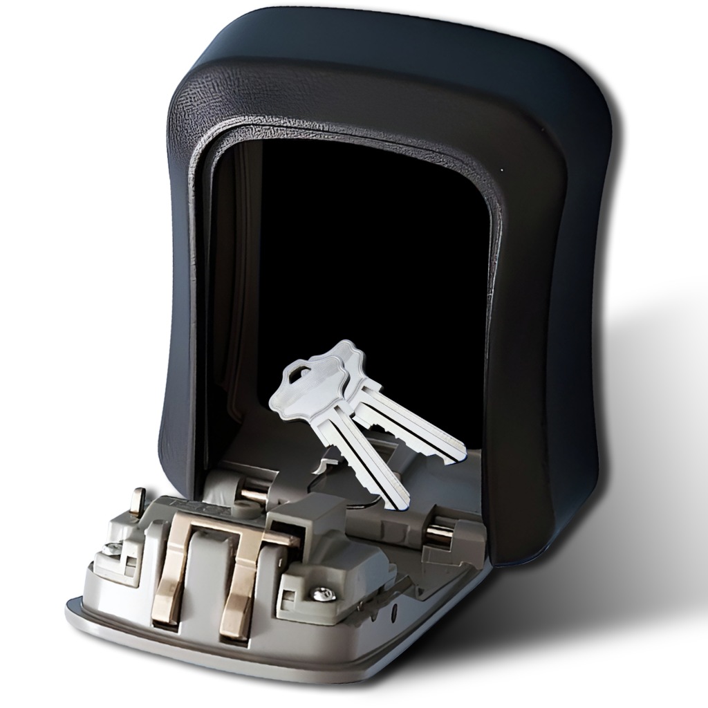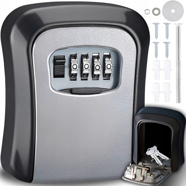 ящик для ключів виготовлений з товстої сталі і оснащений кодовим замком для простоти використання. Цей замок регулюється, встановлюється за допомогою 4 цифрових шифрів, які ви можете передати відвідувачеві будинку у вашу відсутність. Сейф невеликий, тому не виділяється на тлі будівлі. Поміститися в неї можна ОК.3 середнього розміру Ключі. Він має приховане кріплення до стіни для максимальної безпеки. Він також стійкий до атмосферних впливів.