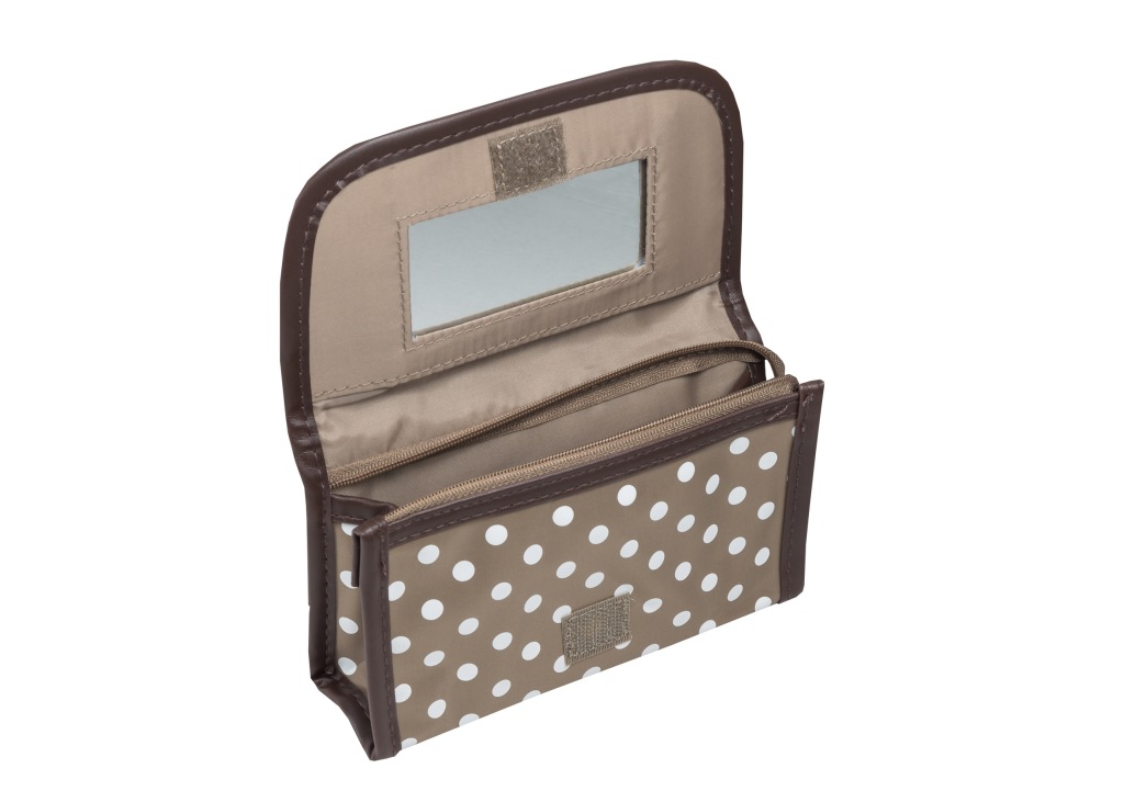 Виготовлена з міцного матеріалу какао-бежевого кольору з білим горошком.