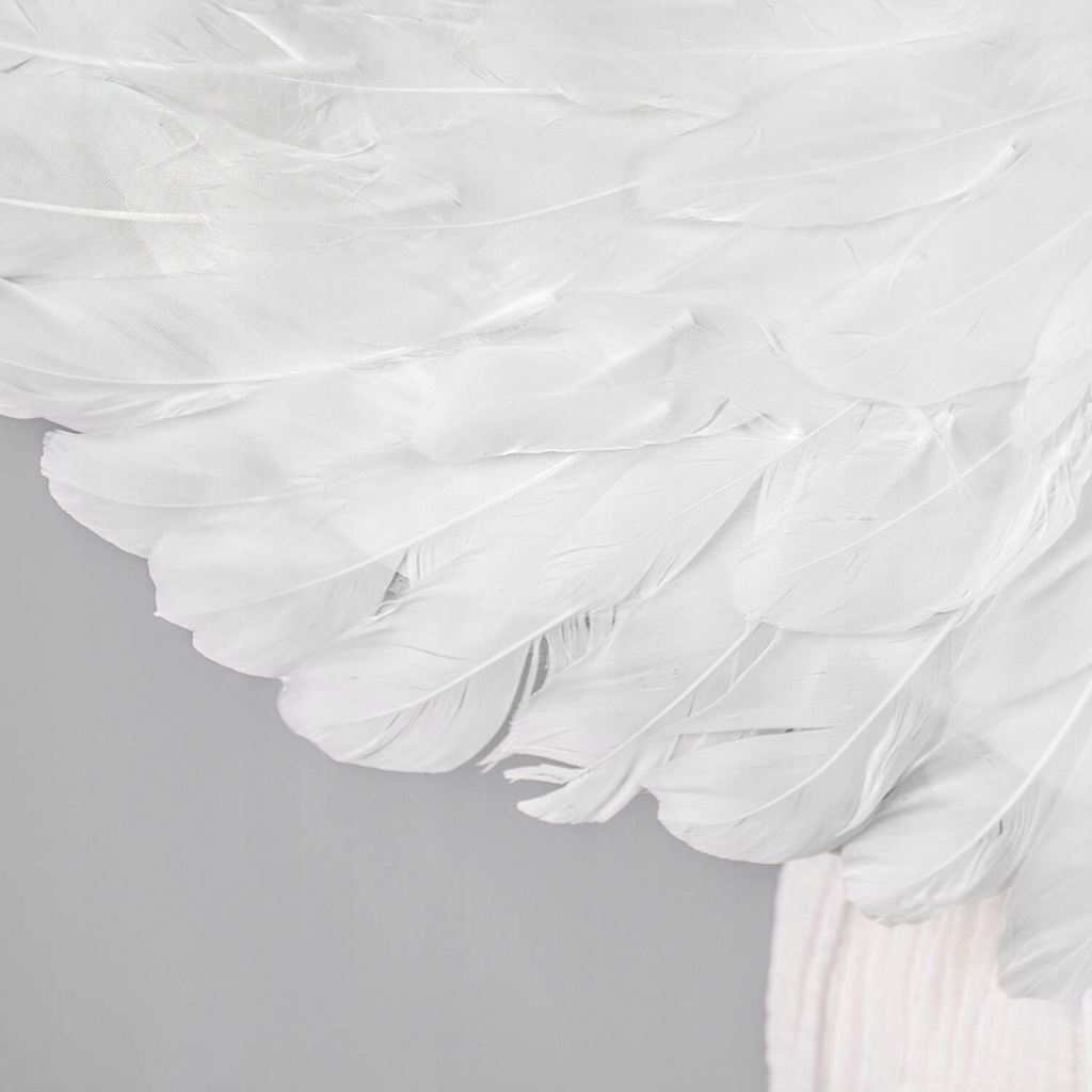 ретельно зроблені, з тонких білих пірʼя крила, до яких були прикріплені гумки, завдяки яким ви легко надягнете наряд