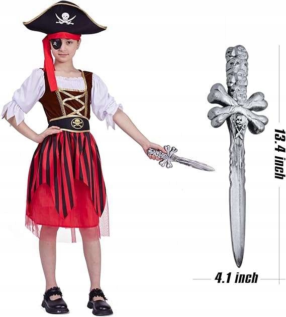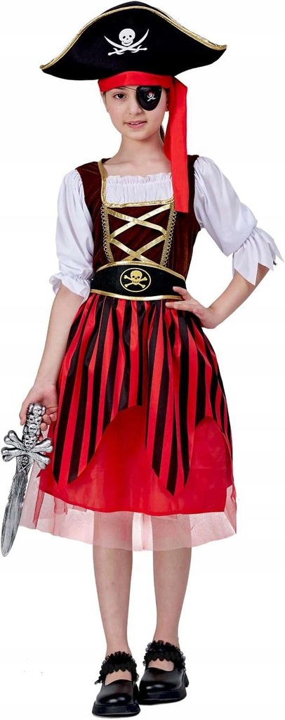 КОСТЮМ ПІРАТА КОСТЮМ ПІРАТА ДЛЯ ДІВЧИНКИ НАБІР АКСЕСУАРІВ 10-12РОКІВ