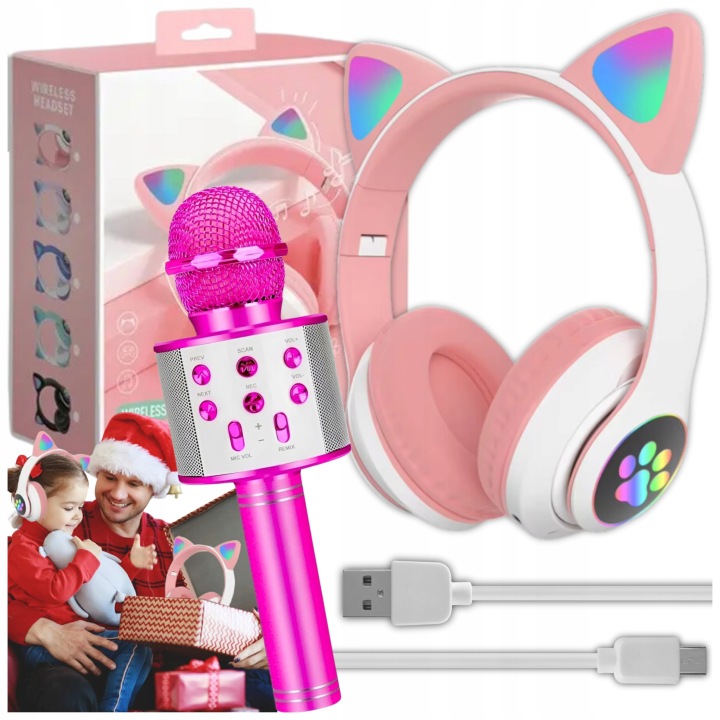 КОТЯЧІ ВУХА BLUETOOTH БЕЗДРОТОВІ НАВУШНИКИ + МІКРОФОН ДЛЯ КАРАОКЕ ДЛЯ ДІТЕЙ