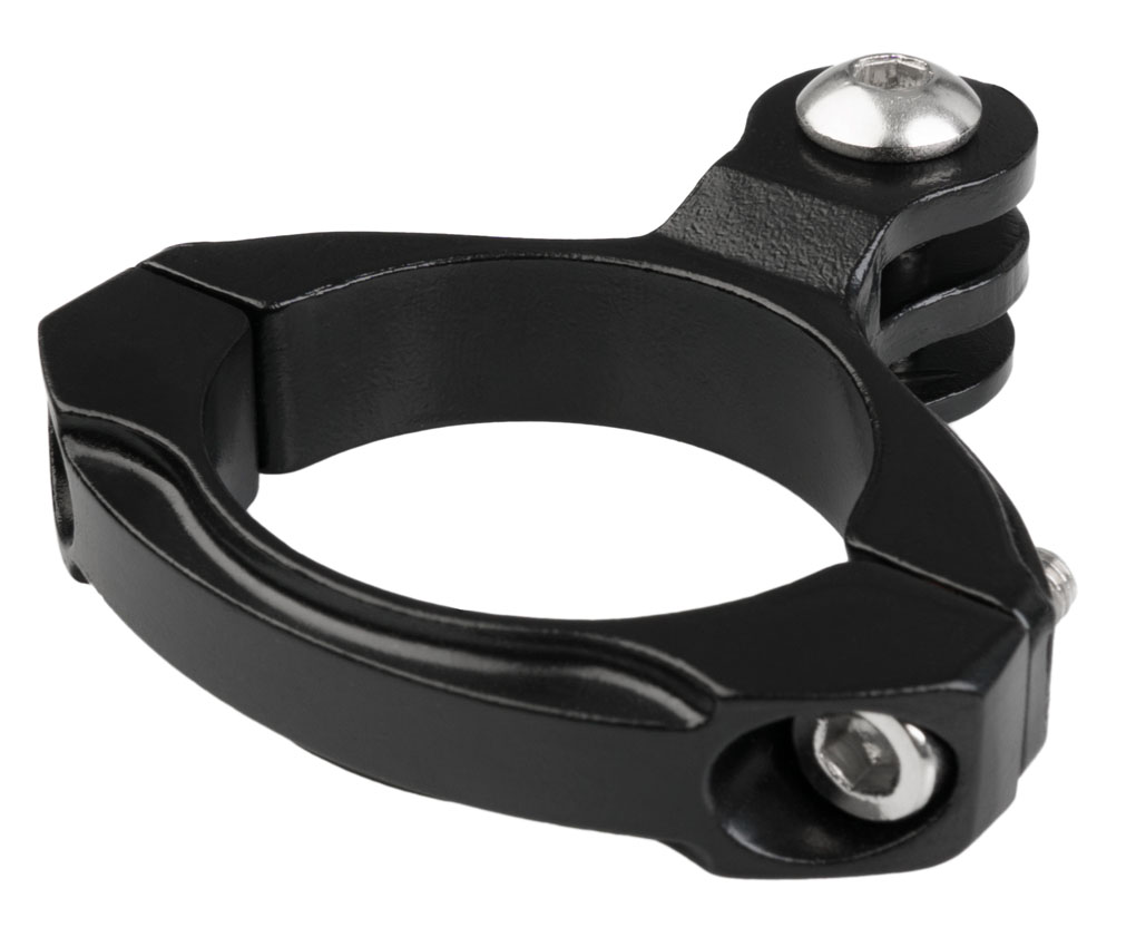 алюмінієве кріплення ідеально підходить для кріплення камери GoPro на кермі велосипеда, мотоцикла, вітрильника, квадроцикла, багажнику на даху або будь-який трубі / підсідельному штирі. з регульованою щелепою кріплення є виключно універсальним, а міцна конструкція і висока якість збірки роблять камеру стійкою і стійкою в будь-яких умовах.