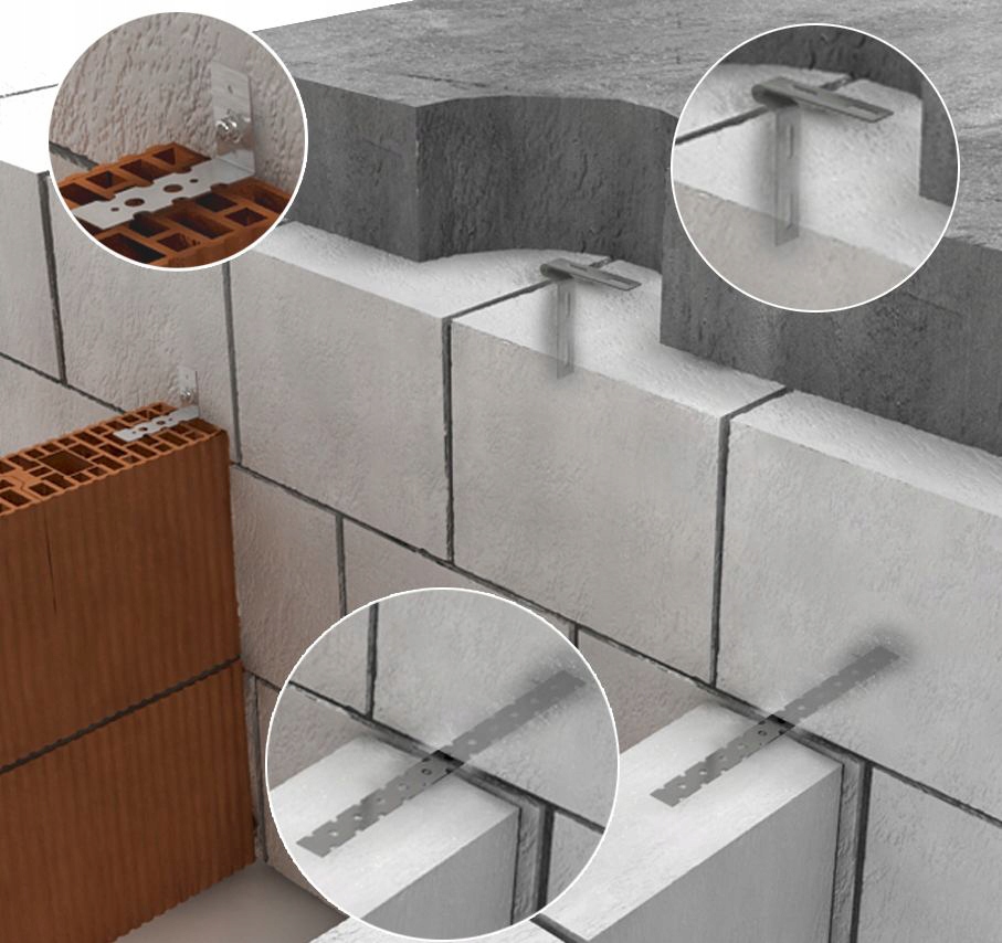зʼєднання стін з елементів однакової висоти. Вони замінюють кладку, особливо при зʼєднанні перегородок з несучими. Це універсальний зʼєднувач, який можна використовувати в традиційному і клейовому розчині.