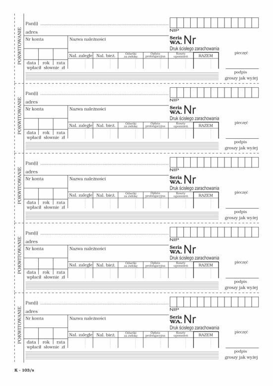 - назва: квиток K-103 пронумерований