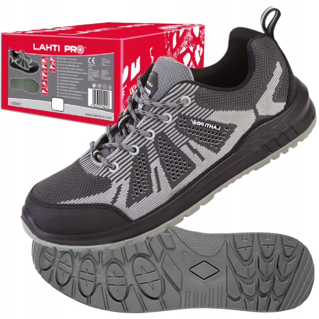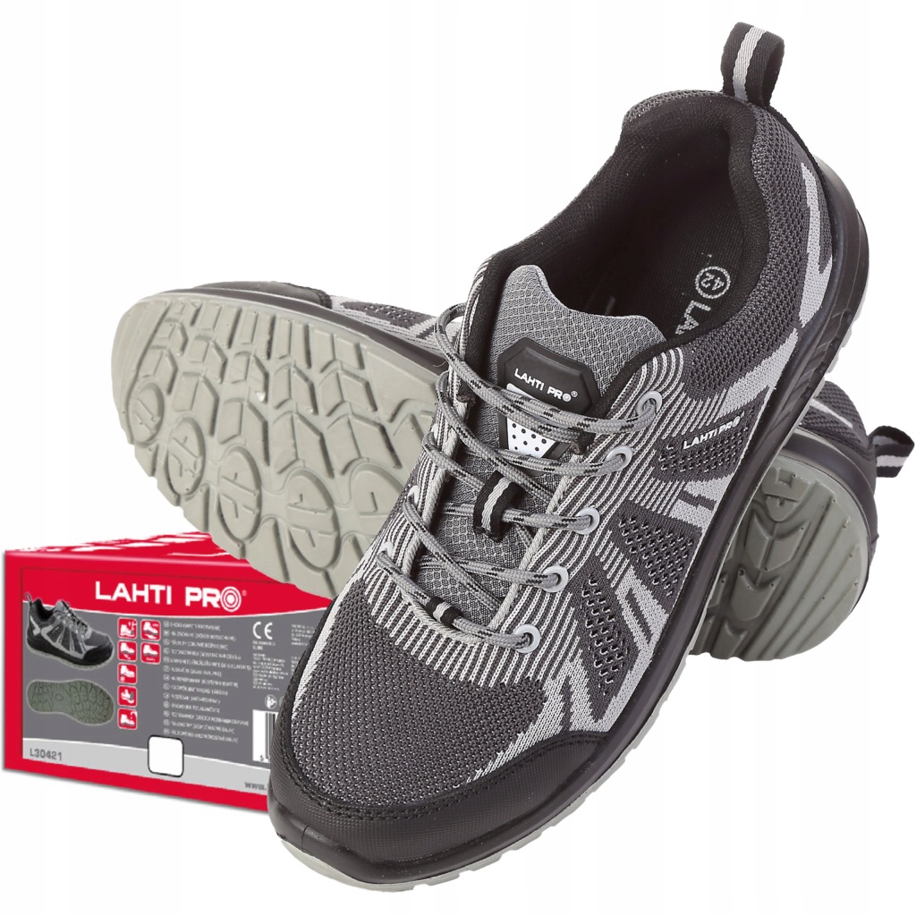 робоча захисна взуття Lahti Pro model l30421 в сіро-чорному кольорі-це безпечне взуття класу S1 SRC, виготовлена з міцного швидко сохне матеріалу і трикотажної сітки 3D. зовнішня частина взуття зʼєднана з перфорованим верхом, що значно покращує вентиляцію стопи. Підкладка з сітчастого трикотажу. Змінна підошва дозволяє використовувати будь-яку устілку, доступну в нашому офіційному магазині виробника Lahti Pro. Підошва виготовлена з двощільного поліуретану з протиковзкими властивостями як на сталевій, так і на керамічній основі. Глибокий протектор забезпечує високу стійкість взуття. Робоче Захисне взуття Lahti Pro l30421 дуже легке і зручне в повсякденному використанні. У взутті використовується сталевий носок. Взуття має антиелектростатичні властивості і абсорбцією в пʼяткової частини. Взуття Lahti Pro l30421 має декларацію CE і відповідає стандарту ISO 20345: 2011. Взуття відноситься до другої категорії засобів індивідуального захисту. Купуючи в офіційному магазині виробника, ви гарантуєте оригінальність продукції і швидку доставку.