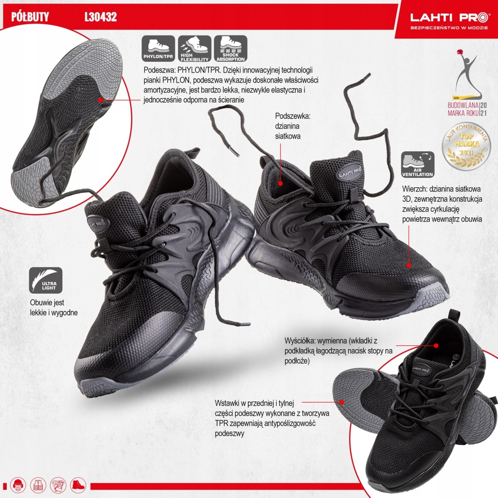Lahti Pro взуття дихаюча спортивна робоче взуття чорний l30432 R. 41