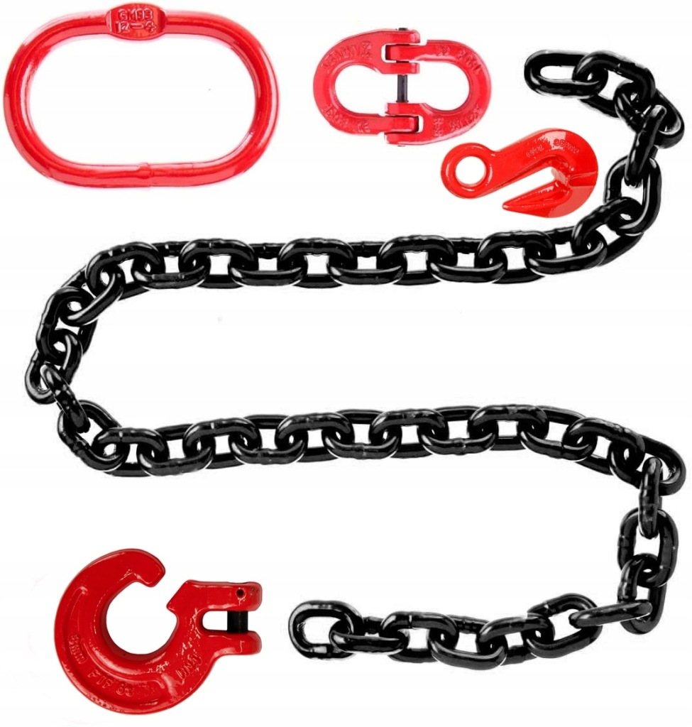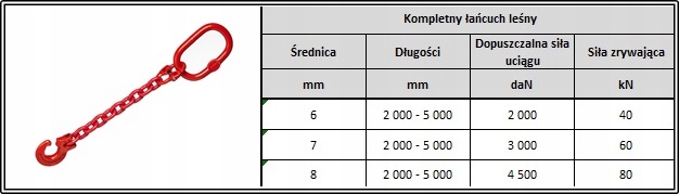 виконання: 1-канатний ланцюг, виготовлений з високоякісної сталі за стандартом PN-EN 818-4 з сертифікованих компонентів і ланцюга з міцністю на розтяг 800 Н/мм2 / г80 / відповідає вимогам Директиви по машинобудуванню 2006/42/EC Вид. травень 2006. Кругла ланцюг відповідає стандарту EN 818-2
