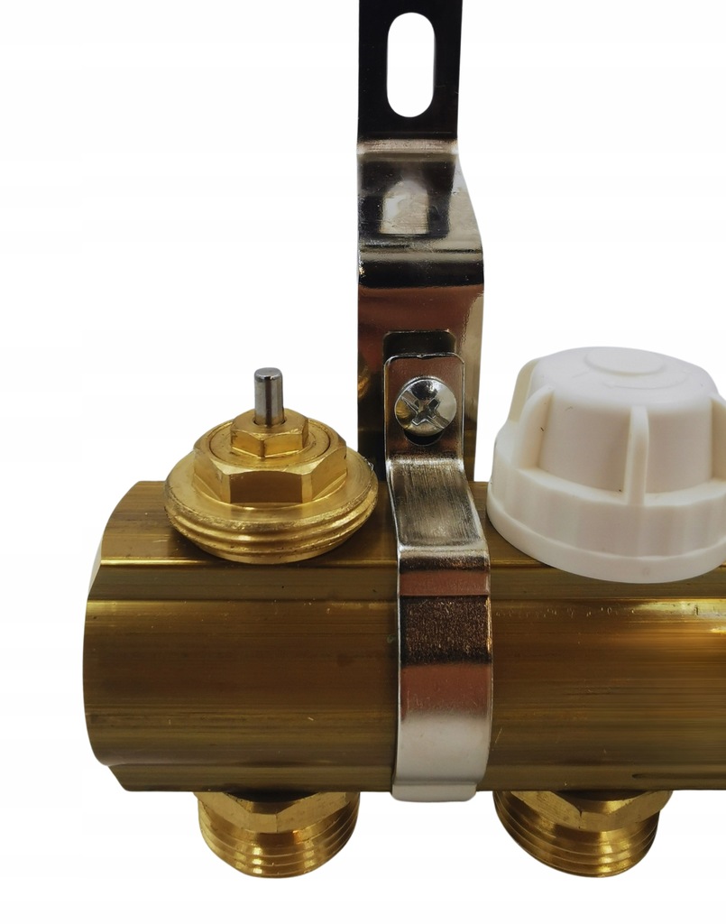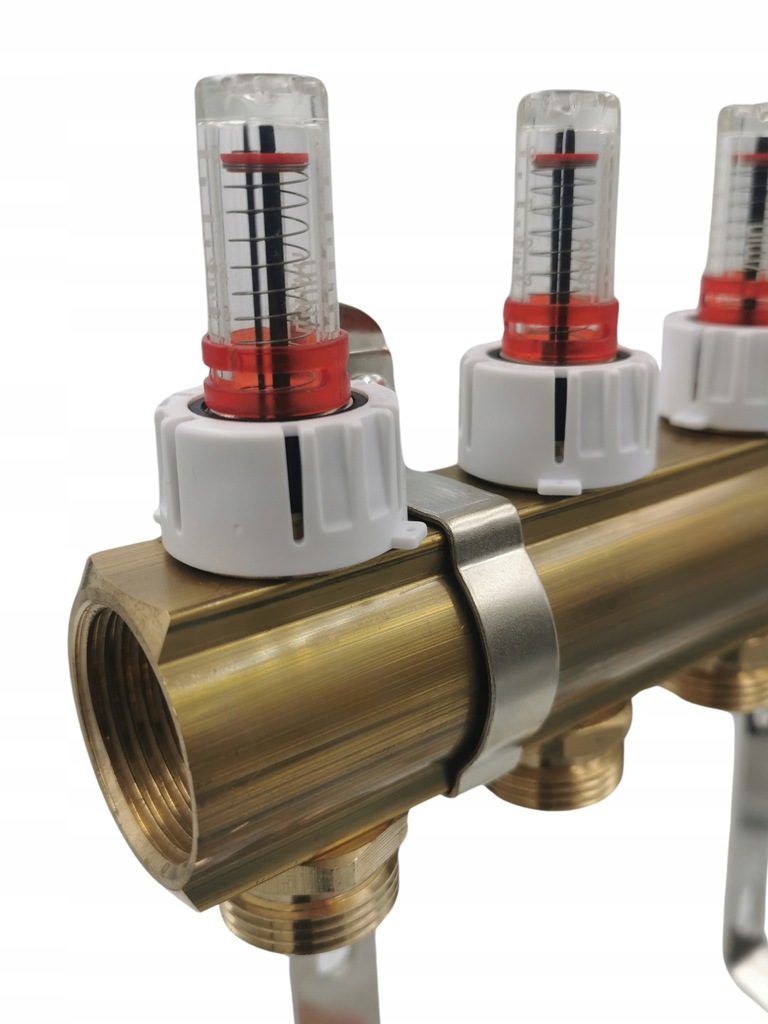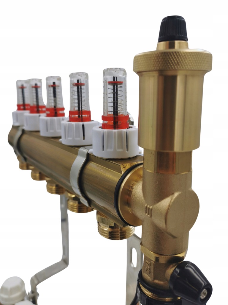 латунний розподільник - це елемент системи підлогового опалення, який використовується для рівномірного розподілу гарячої води по окремих контурах опалення. Він виготовлений з латуні, яка стійка до корозії і високих температур.