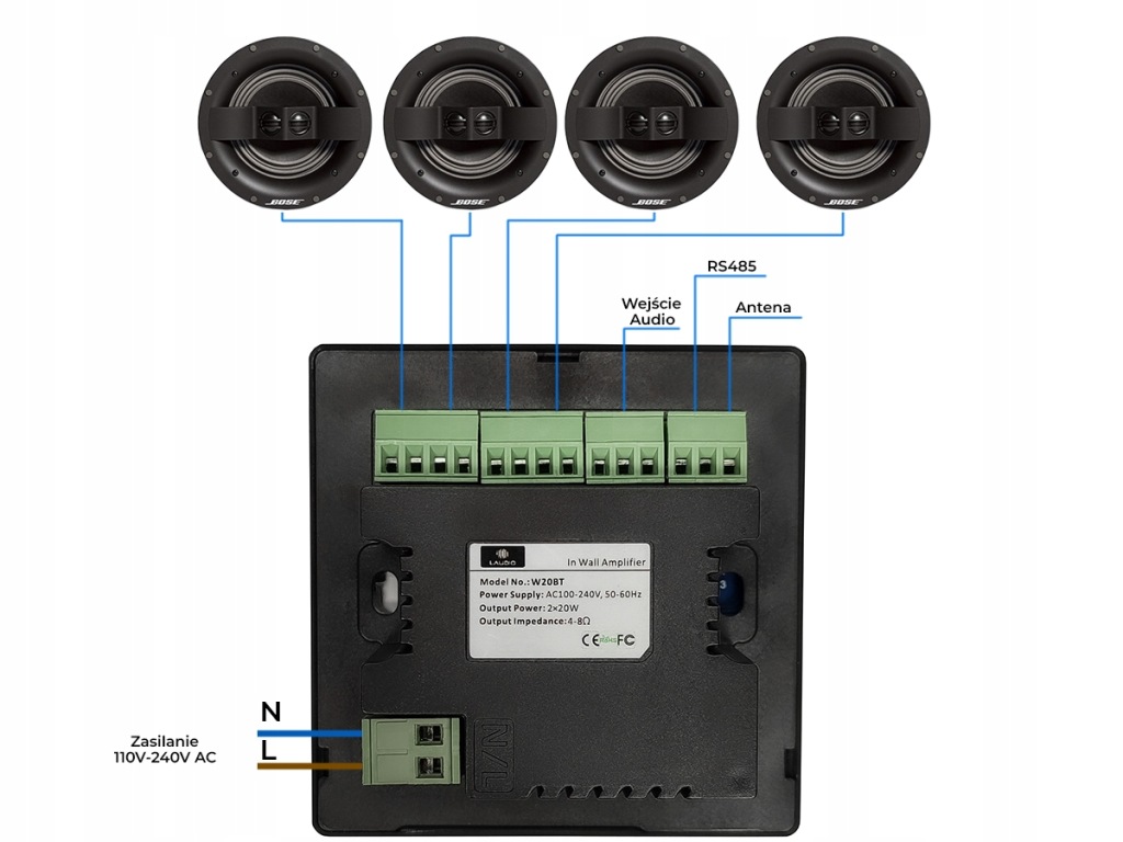 настінний програвачLAUDIO W20BT може виступати в ролі медіацентру. У пристрої реалізований модуль Bluetooth для бездротового звʼязку, наприклад, з планшетом, смартфоном або компʼютером. FM-радіо з автоматичним пошуком і памʼяттю ваших улюблених станцій. Музика також може відтворюватися з SD-карти (до 32 ГБ) або зовнішнього накопичувача типу Pendrive.крім цифрових джерел, до настінного програвача можна підключитися за допомогою аналогового сигналу AUX , наприклад, з компʼютера або телефону.