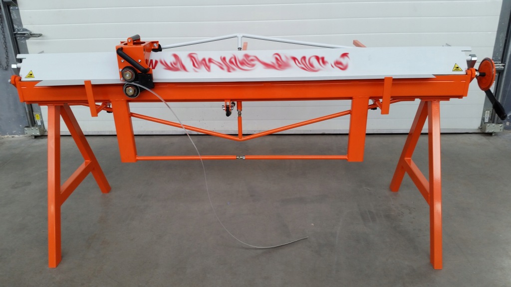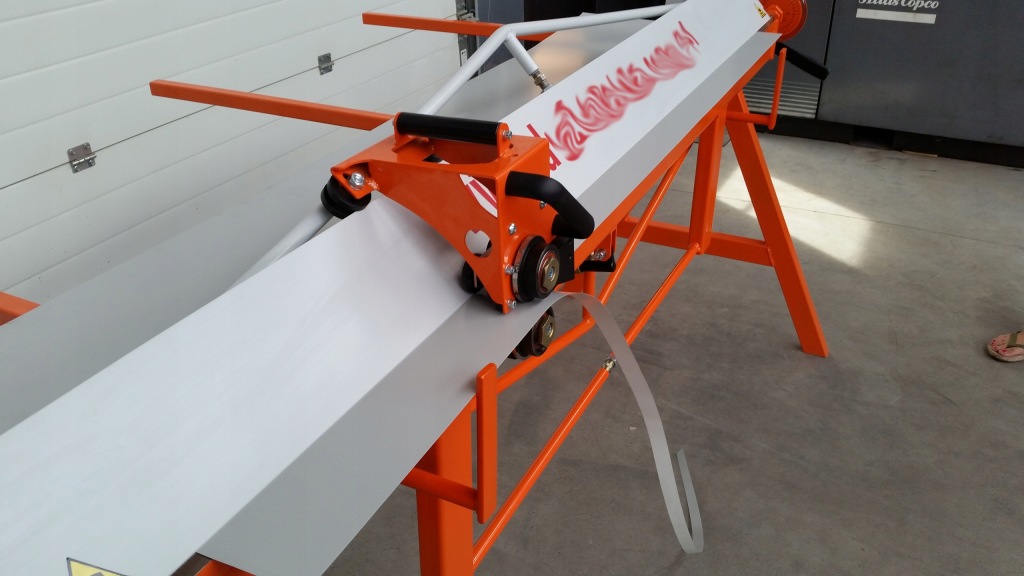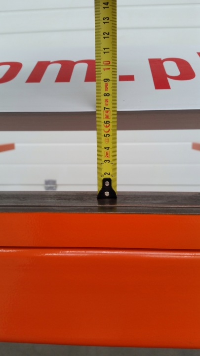 - задній стіл, оснащений опором (1000 мм) – дозволяє розміщувати лист і вільно переміщати його. Його можна використовувати як місце для укладання листового металу. Оснащений шкалою, яка дозволяє точно розташувати вигнутий і розрізаний лист.