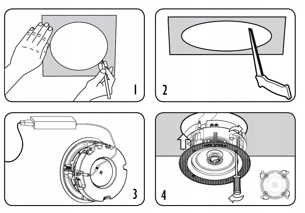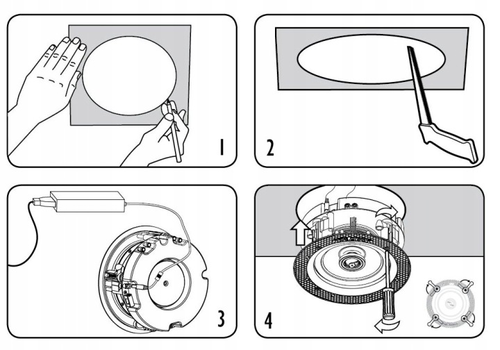 стельові колонки Bluetooth Lithe Audio легко і швидко монтуються. Для установки пристрою просвердлите два отвори діаметром 205 мм і зʼєднайте обидва Динаміка за допомогою кабелю Динаміка . Потім підключіть шнур живлення від блоку живлення до динаміка та джерела живлення. Заключний етап-помістити динаміки в попередньо просвердлені отвори, закріпити їх викруткою і встановити магнітну металеву решітку. Глибина, необхідна для установки пристрою 95 мм.